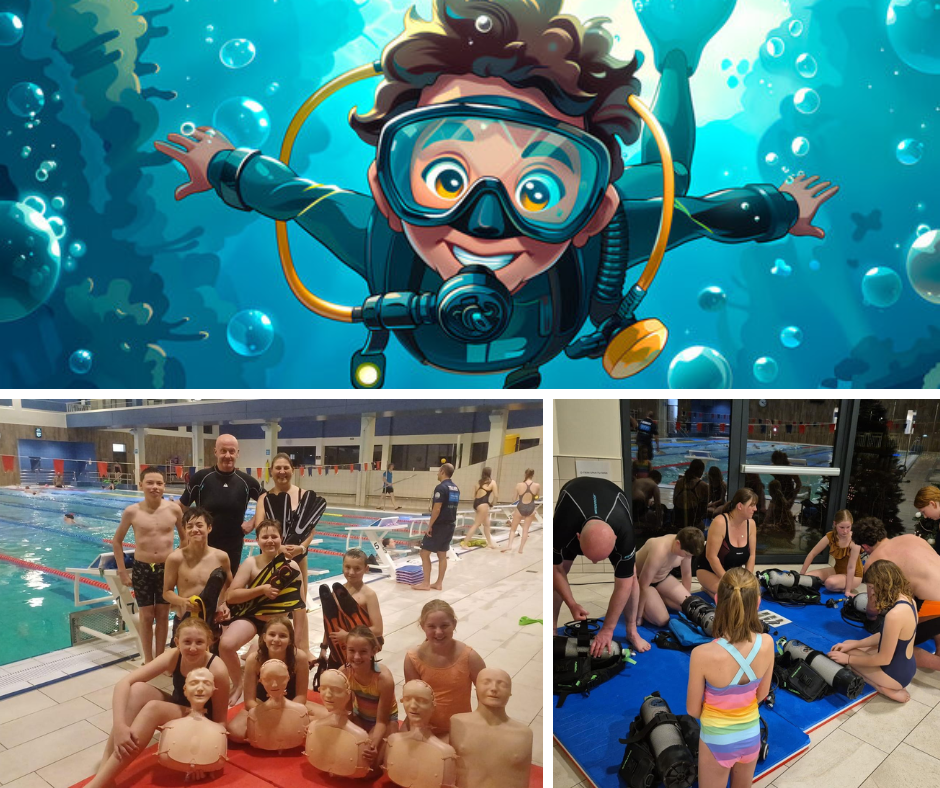 Jeugdduikers tussen 8 en 14 jaar oefenen om de twee weken op donderdagavond van 20u tot 20u45 onder begeleiding van ervaren jeugdduikinstructeurs en jeugdduikbegeleiders in De Zwemkom van Wevelgem.